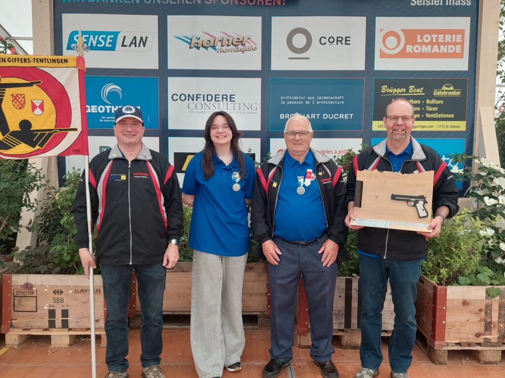 Bei der Einzelmeisterschaft konnte unser Verein mit Pascal Broch den dritten Rang erreichen. Ebenfalls den dritten Rang erreichte die Gruppe „Giffers-Tentlingen 1“ mit den Schützen Pascal Broch, Richard Fornerod, Gabriel Mauron und Gérard Gendre.